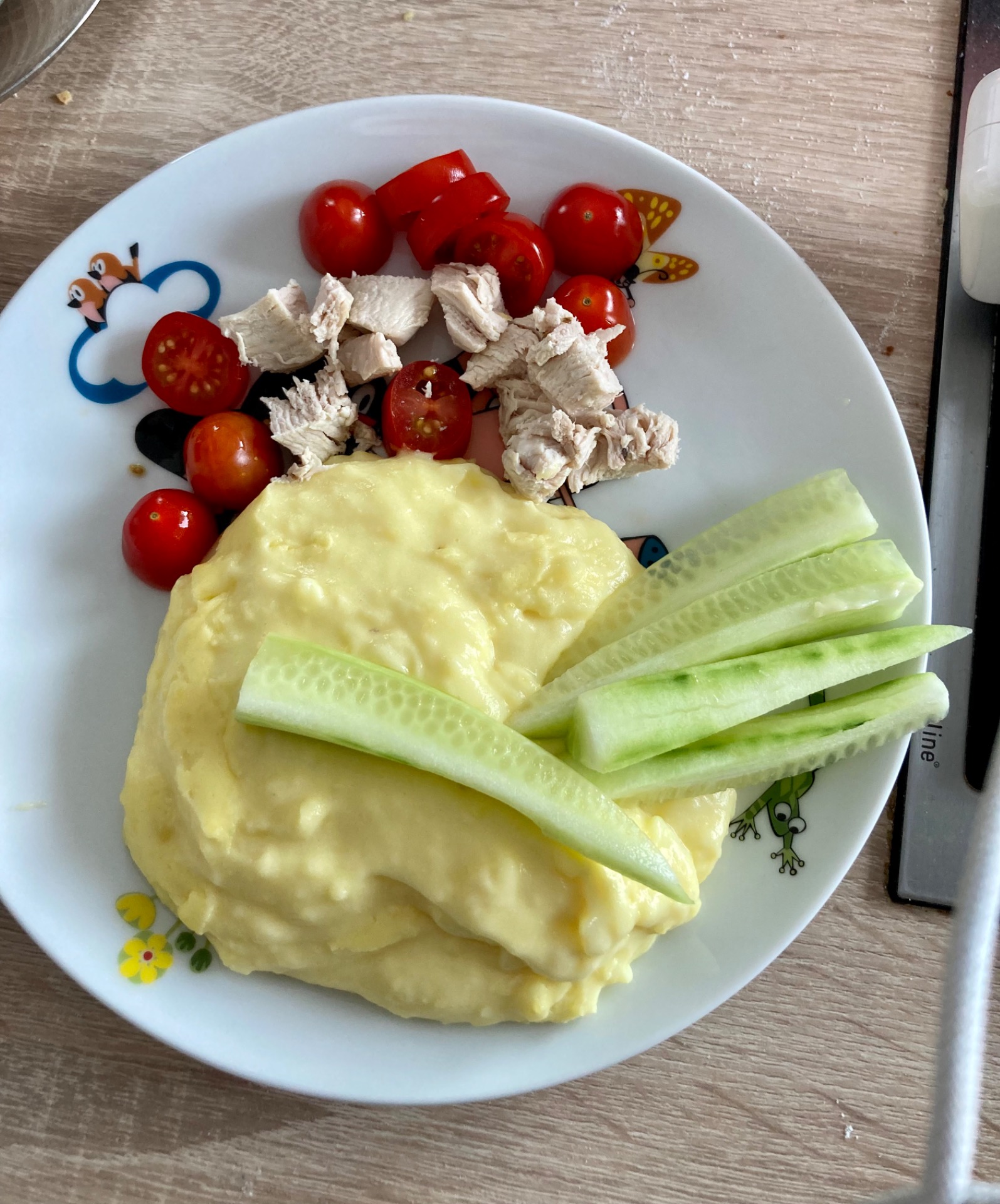 - moc obdivuji kreativní rodiče, kteří tvoří barevná zvířátka na talíři jako nic, ale trénink dělá mistry. Zvířátka jsou skvělá, i když já často dělám jen kohoutka, máme totiž větší spotřebu rajčátek (na hřebínek).